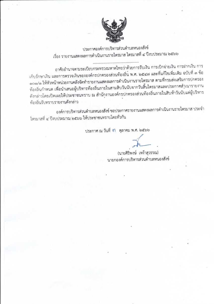 Posted in ข่าวประชาสัมพันธ์ ประกาศองค์การบริหารส่วนตำบลหนองสังข์ เรื่อง รายงานแสดงผลการดำเนินงานรายไตรมาส ไตรมาสที่ 4 ประจำปีงบประมาณ พ.ศ. 2566 mungmee 110748_1_20231003-150045